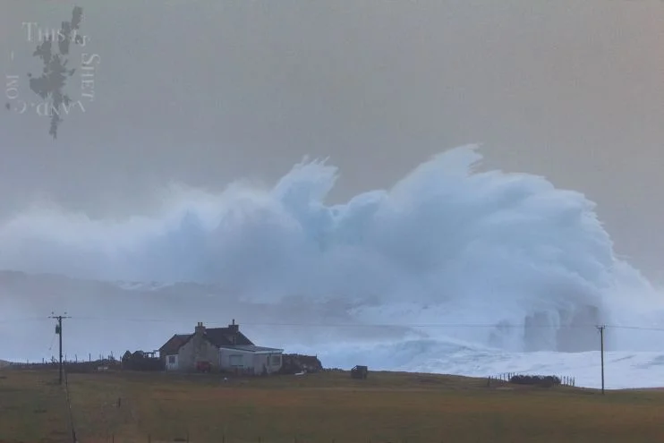 Ryan Sandison's photo of a massive wave breaking over the Skerry of Eshaness made it into most of the national newspapers and was shared more than 3,200 times online, while it has reached almost half a million users on his Facebook page.
